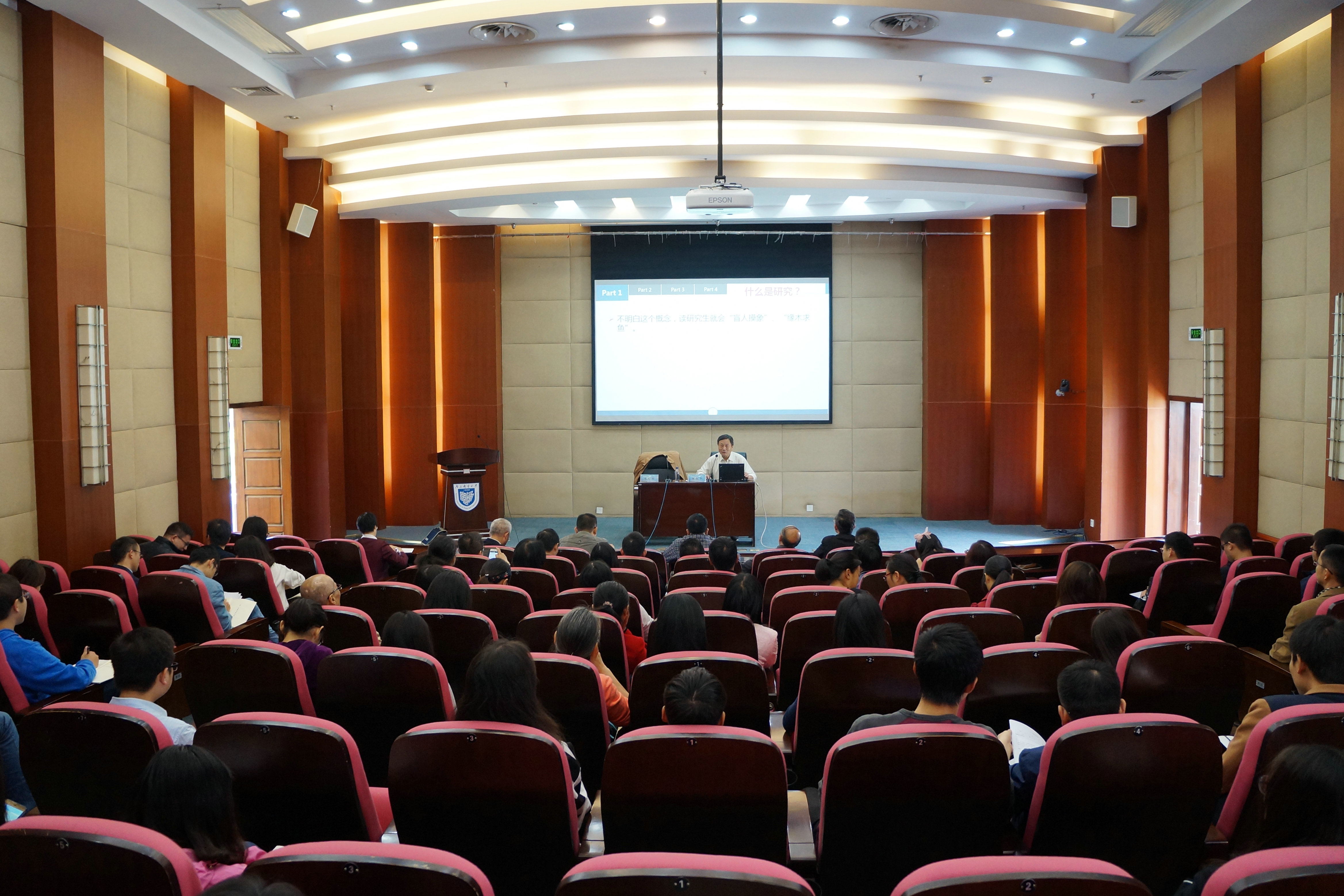 陈叔平教授的报告题目为“活到老,学到老,学习就是研究”,陈教授结合自身的研究经历,从什么是研究?什么是数学?当个好老师以及学术生态建设等几个方面给听众们奉献了一场丰富的精神盛宴,陈教授的报告始终坚持“言之有物,言之有理”的基本要求,报告内容翔实,语言幽默风趣,赢得了与会听众的阵阵掌声。